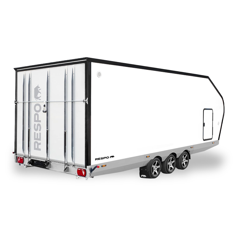 Experience superior transport capability with our enclosed car trailer, featuring an innovative aerodynamic design that significantly reduces fuel consumption whilst providing generous interior space. Constructed with an exceptionally tough, hot-dip galvanised steel frame, this trailer is engineered for uncompromising durability. It is perfectly suited for securely transporting cars, snowmobiles, jet skis, motorcycles, ATVs, UTVs, and other motor vehicles or heavy equipment. Thanks to the integrated tilt function, the rear ramp door positions at a remarkably low angle to the ground, allowing for effortless loading of low-clearance vehicles.